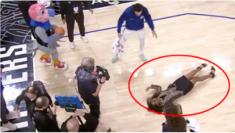 Pink was doing her due diligence interviewing L.A. Clippers shooting guard Amir Coffey after a game against the Atlanta Hawks. After her chat, Pink somehow lost her balance in black heels on the hardwood, slipped and came crashing down pretty hard.