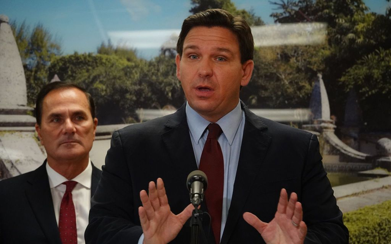Florida Gov. Ron DeSantis speaks during a news conference in West Palm Beach, Florida, on Jan. 6, 2022. | Source: Sun Sentinel / Getty