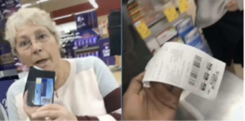 At this point, she flashes her unverifiable photo ID, and the TikToker offers her gummy worm to diffuse the situation; he even offers to show his receipt, which does nothing to impact the aggressor.