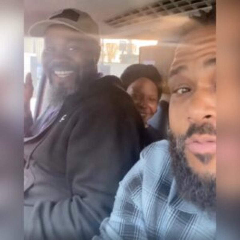 “This brother Alex was ahead of me in line so I asked if he would drive me to my place and he agreed,” he captioned the post. “What he didn’t tell me was that he had someone in the car and that it was full of work equipment. But we made it work! Just another one for the books!”