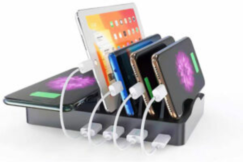 This charger has five dedicated ports: three smart USB-A ports, one USB-C 20W, and one USB-A 12W port. This fast-charging wireless charger helps put an end to those annoying moments when your devices run out of power. With power delivery and the QC 3.0 USB-C port, it recharges your cell phones – including iPhones – up to 100% faster.
