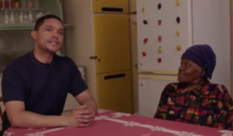 Viewers familiar with the show recall Gogo’s appearance on the show in 2018 in “Trevor Chats with His Grandma About Apartheid and Tours Her Home, ‘MTV Cribs’-Style.” In the 11-minute segment, Noah sat down with his grandmother in his native South Africa, where she recalled living through apartheid and shared memories from Noah’s childhood.