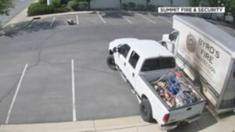 The truck was parked outside Summit Fire and Protection, and its catalytic converter was previously stolen. Someone else siphoned the gasoline when another thief appeared on Saturday and boldly attempted to purloin gas in broad daylight. Still, his plans quickly went awry, KSL TV reports.