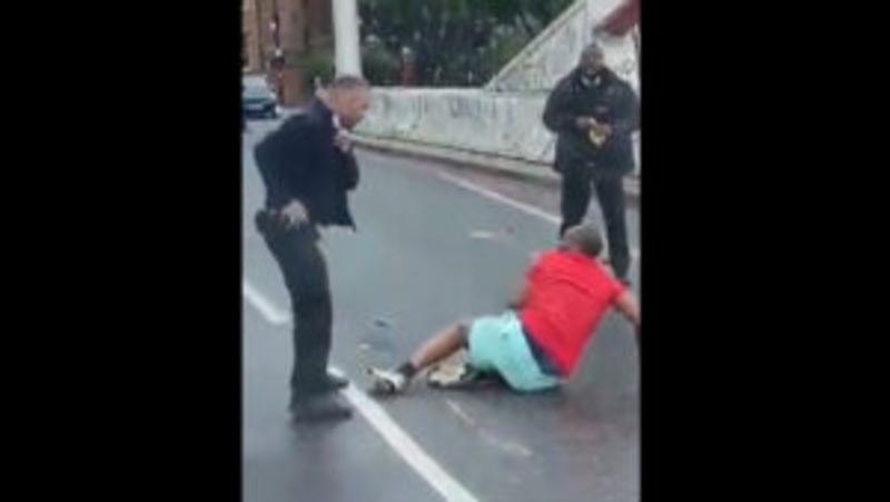 The man is seen on video being confronted by the police officers who then tased him. He falls to the ground, shaking uncontrollably as he rolls around on the ground. As he gets back up, the police officer shoots him again with the taser causing the same reaction as he falls back to the concrete floor. As he rolls on the ground again and gets back up, he is tased again.