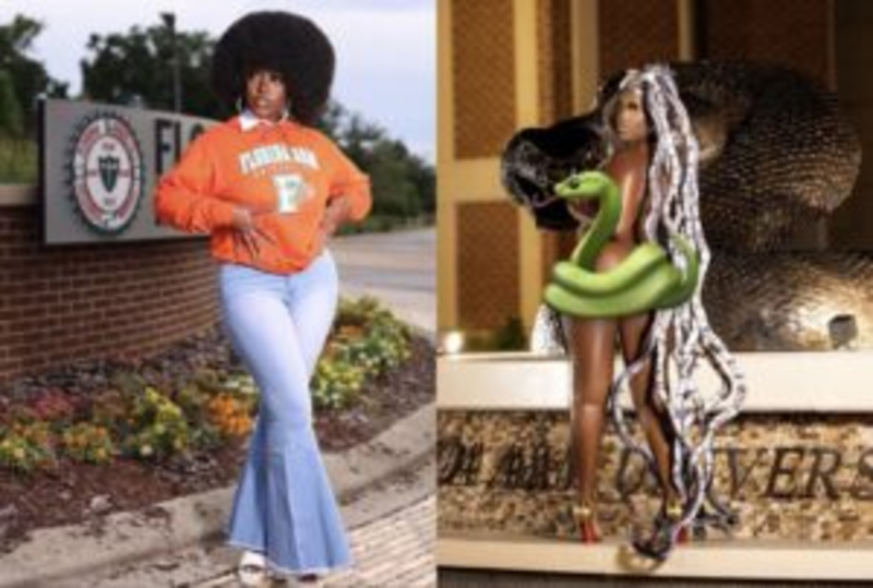 A counselor education alumni had social media in shambles after she posted her very nude grad pictures, in front of the HBCU’s Rattler mascot statue, wearing nothing but gold red bottom heels and a head full of body-long snakes.