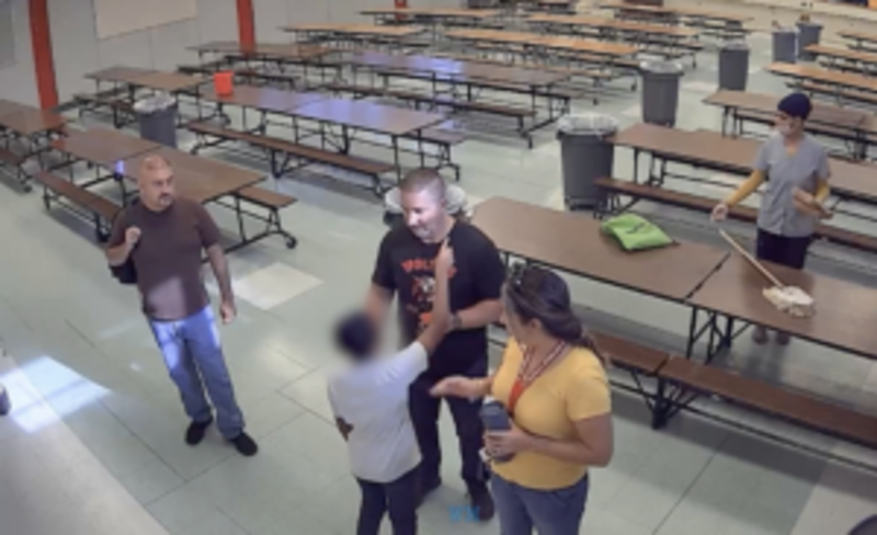 As depicted in the video, the assault took place in the school’s cafeteria, where the 11-year-old autistic student is seen talking to Vollhardt and two other adult staff. Described as “an upset student” by district Superintendent Bob Nelson, the child points at the ex-principal before the man aggressively shoves him to the ground at full force. One school employee is then seen helping the student as Vollhardt continues to yell and point at him.