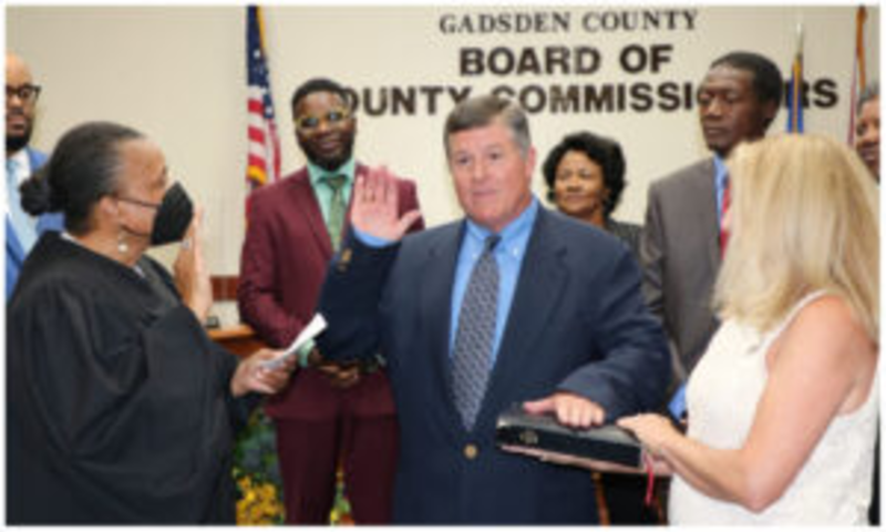 Former Department of Revenue employee Jeffery Moore from Havanah was sworn in on August 3 as a member of Gadsden County’s board of county commissioners but resigned in September.