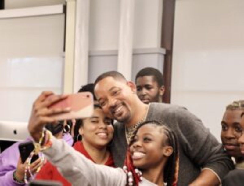 The hip-hop and movie superstar is greeted like an old friend by the students as they approach him and quickly whip out their cellphones to take snaps and capture the moment. Several students slap their hands with Smith’s and some get a warm embrace from one of Philly’s success stories.