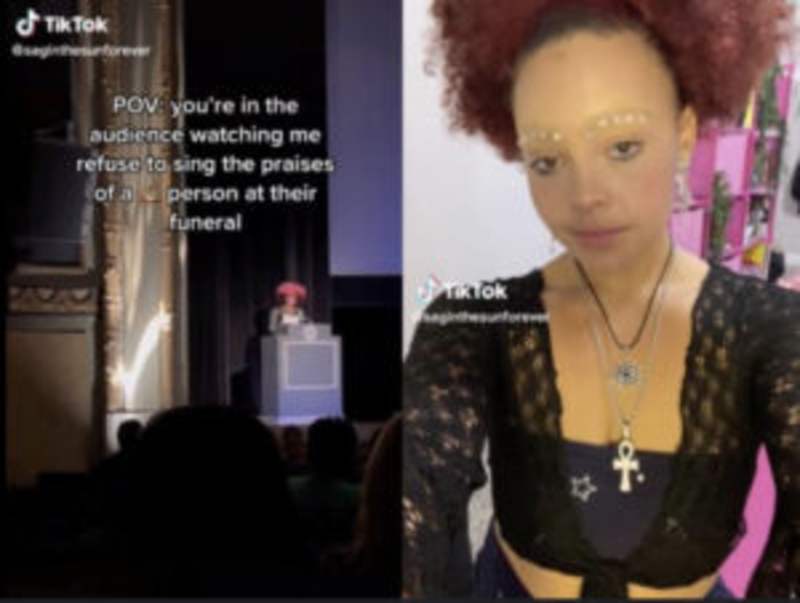 According to The National Desk (TND), the TikToker named Saga (saginthesunforever) is a self-proclaimed “Black Supremacist.” They recently went viral for calling their father a “racist” and “misogynistic” Trump supporter, among other insults, during his funeral roughly a month ago.