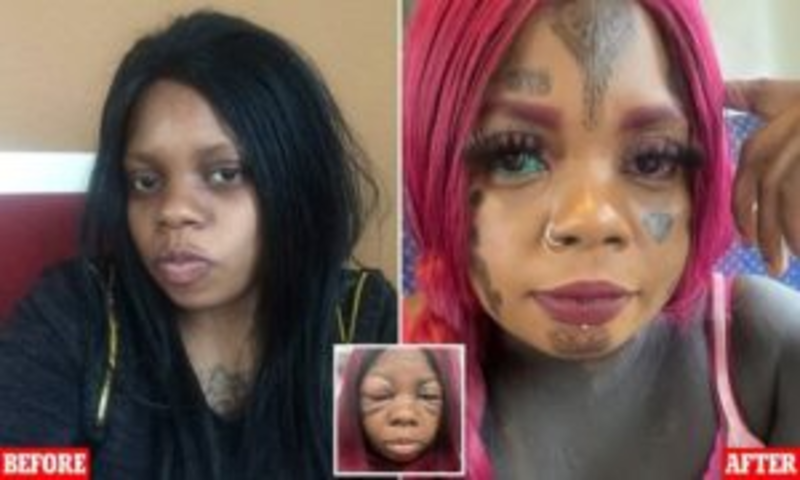 Peterson, who also has a split tongue as well as several face and body piercings, was temporarily blind for three weeks. Her seven-year-old daughter warned Peterson she could go blind, and now the mother of five wishes she’d only tattooed one eyeball instead of two.
