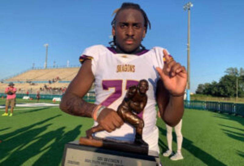In the photo, the running back from Fort Worth, TX has a tattoo on his arm and a very visible mustache. A picture of Johnson holding a Most Valuable Player trophy for the 12 and under division left many in disbelief. He was awarded the trophy after his football team from Dallas Dragons Elite Academy (DEA) won the 2022 Youth National Championships held in Miami.