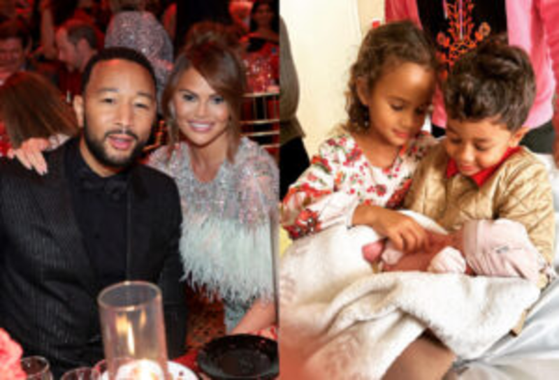 In a picture revealed on Teigen’s Instagram, the couple’s two other children—6-year-old sister, Luna, and her 4-year-old brother, Miles—are shown carefully holding their youngest sister.