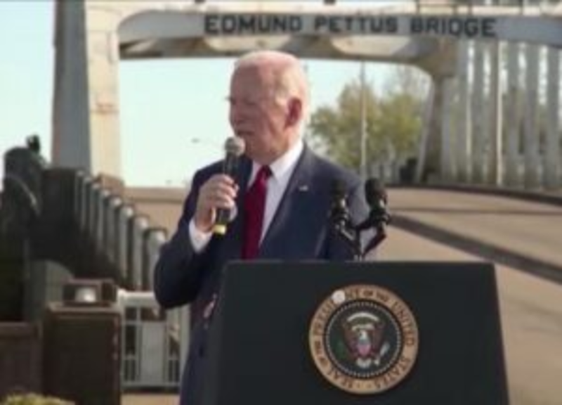 “Selma is a reckoning. The right to vote and to have your vote counted is the threshold of democracy and liberty,” Biden said in front of the Edmund Pettus Bridge, where state troopers clubbed and used tear gas against the 1965 voting-rights marchers.