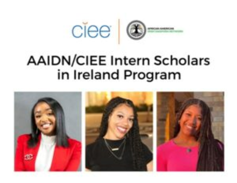 Nearly forty percent of African Americans have Irish ancestry, according to some researchers, and African Americans share many other cultural, historic and social justice affinities with Ireland. Beginning in 2023, the AAIDN/CIEE Intern Scholars in Ireland Program will provide a life-changing opportunity for Scholars to explore their heritage, provide international business experience, and polish tangible work skills that will aid them in their future career.
