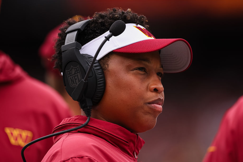 King became a barrier breaker in 2021 when the NFL’s Washington Commanders hired her to coach the team’s running backs. She has since become a running game coordinator with the Chicago Bears, becoming the first female coach in team history; the Bears also have multiple Black men in their front office.